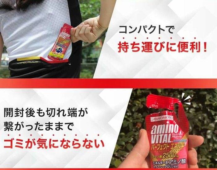 味之素红色:适合中途食用,补充体能缓解肌肉疲劳。产品特点:包含的氨基酸每支为2500mg,丙氨酸,脯氨酸和糖分混合的小容量果冻。原材料:糖稀、琼脂/丙氨酸,柠檬酸(Na)脯氦酸,酸化剂,增稠多糖等。在下半场可以期待不间断的全力以赴的表现。因为可以单手开封,所以马拉松和自行车等活动也可以顺利地摄取。...
